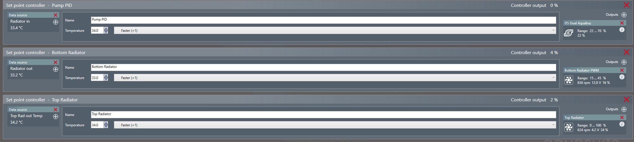 If I use a 2 point controller and my AC pump PWM is plug to a fan port on the Aquaero, will it power off the pump unlike if the pump is an AC D5 USB? Do you have any experience how to set a Setpoint controllers (PID)?
