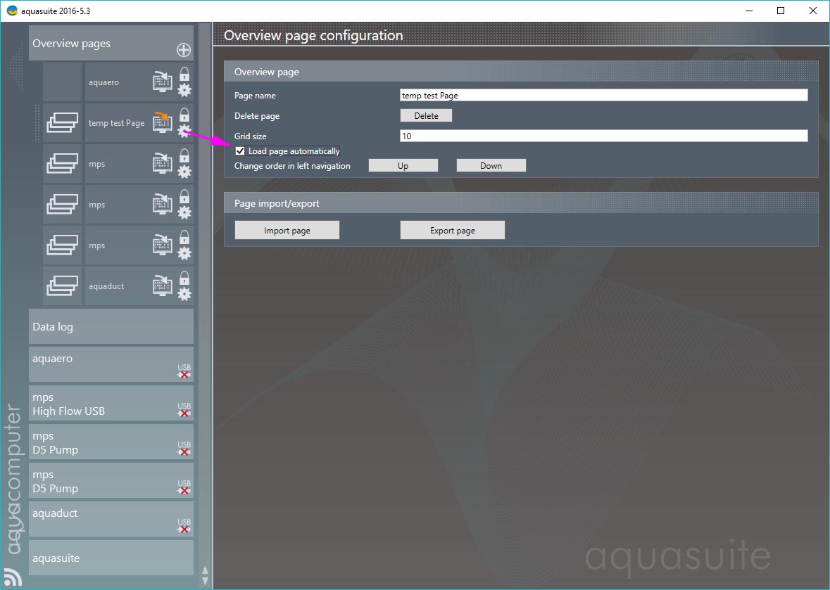 The trick is when you set up the automatic page loading stuff, you have to close the aquasuite the normal way so it can save all these settings.