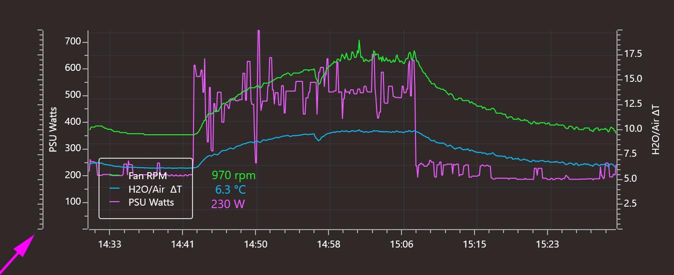 In this instance I chart the PSU Watts vs. Coolant/Ambient air delta vs. fan RPM.