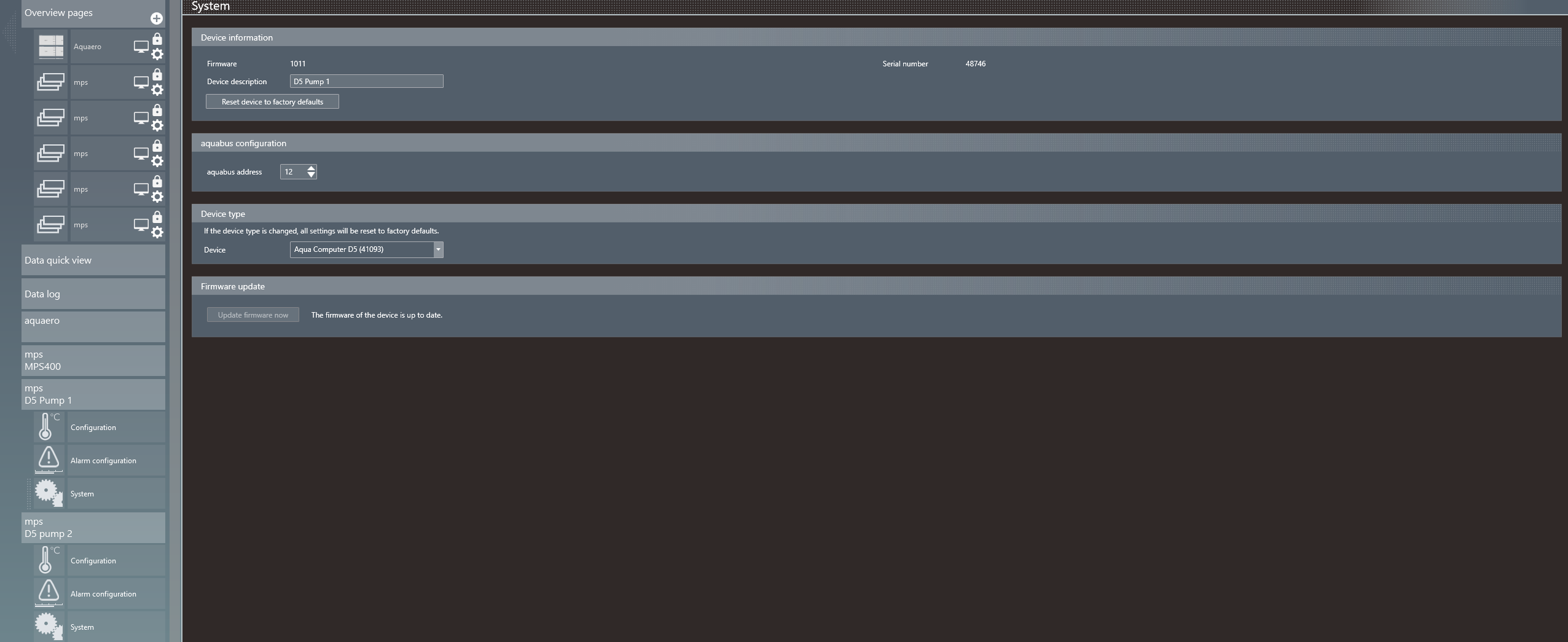 I am not sure if the 2 pumps are functioning properly using Aquabus but both are detected by USB. It maybe the pump mps sensor on pump #1 is the problem. Both pump were purchased from Performance PC last year in June and July 2017 and quite not sure if its still under warranty. I use this computer as my daily work station and I don't have a spare pump to use in case I send to RMA.
