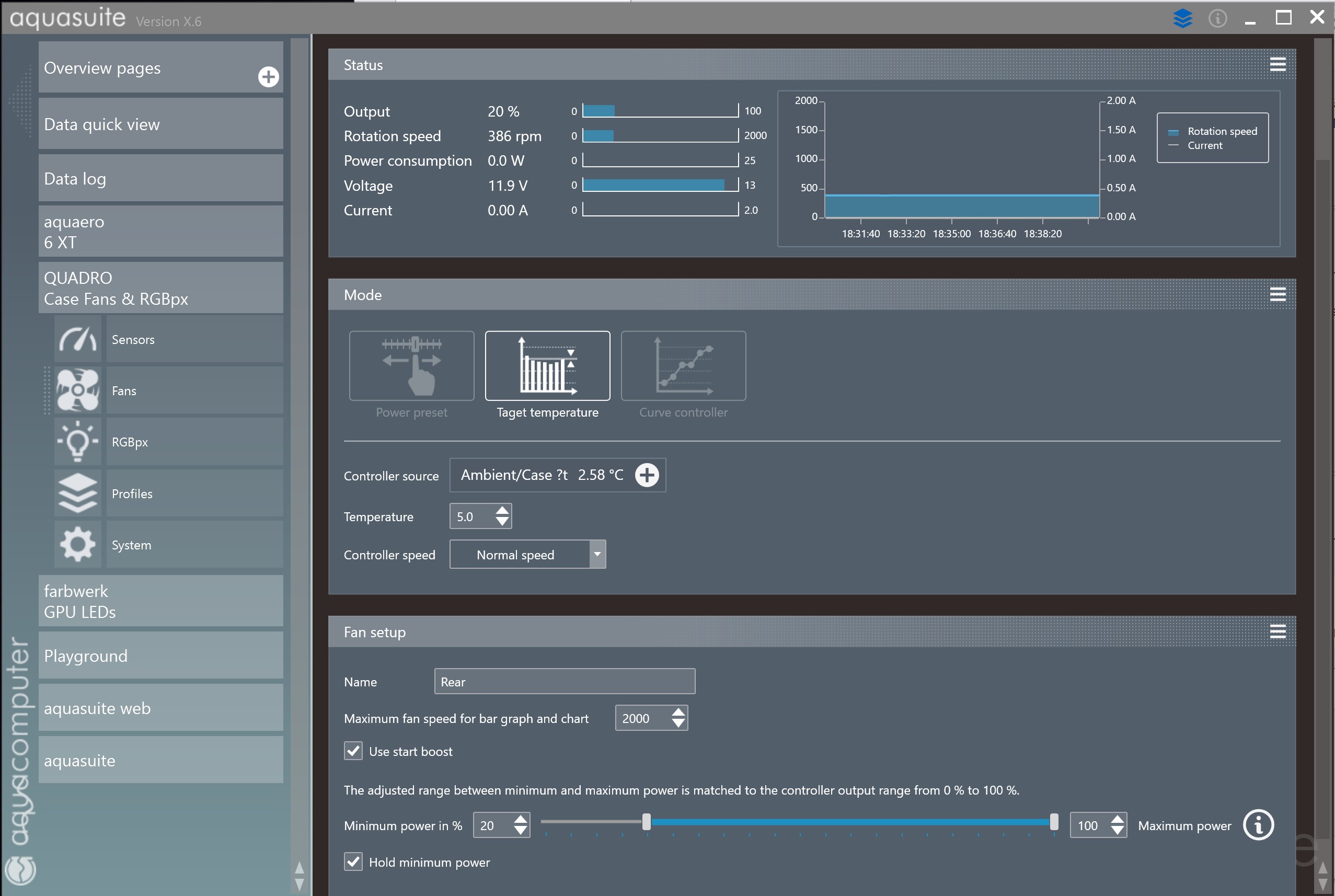 I used an existing fan controller for the screenshot, so the source shows Ambient/Case Δt (I guess quadro has same upper character issue as aquaero)