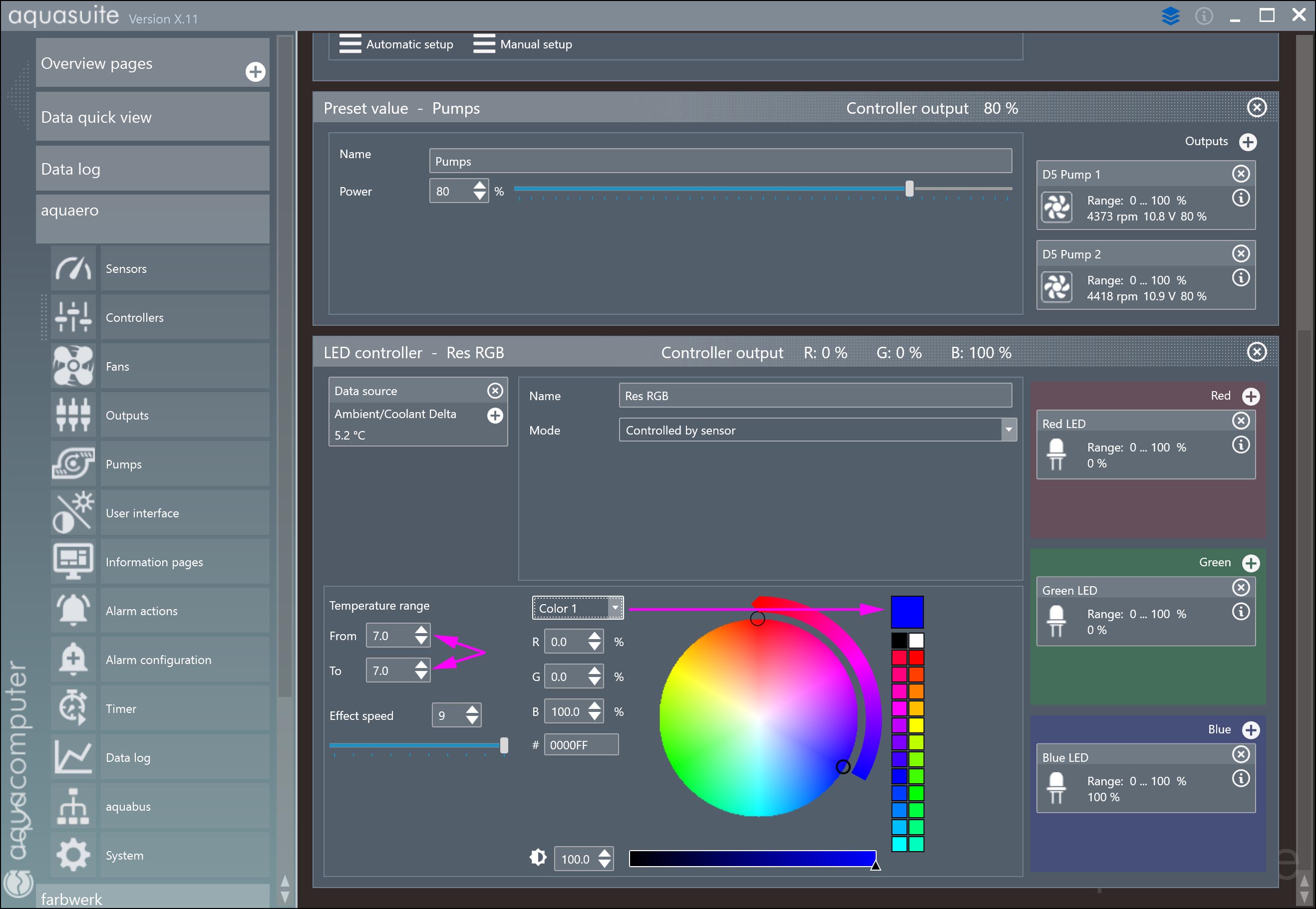 But it seems that is not all. I was able to do exactly what You seek to do with my Aquaero 5 LT but I had to type numbers for the first controller when temperature was < 7,5 °C while for the second one i had to do modifications when temperature was > 8 °C. At least it seems that it worked that way, may need some testing. I did not check what it gives after a power cycle.