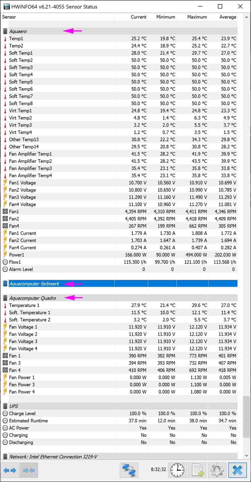 I have only a software sensor on the farbwerk, no hard temperature sensors, so HWiNFO shows no sensor data and aquasuite does not list the farbwerk under HWInfo.