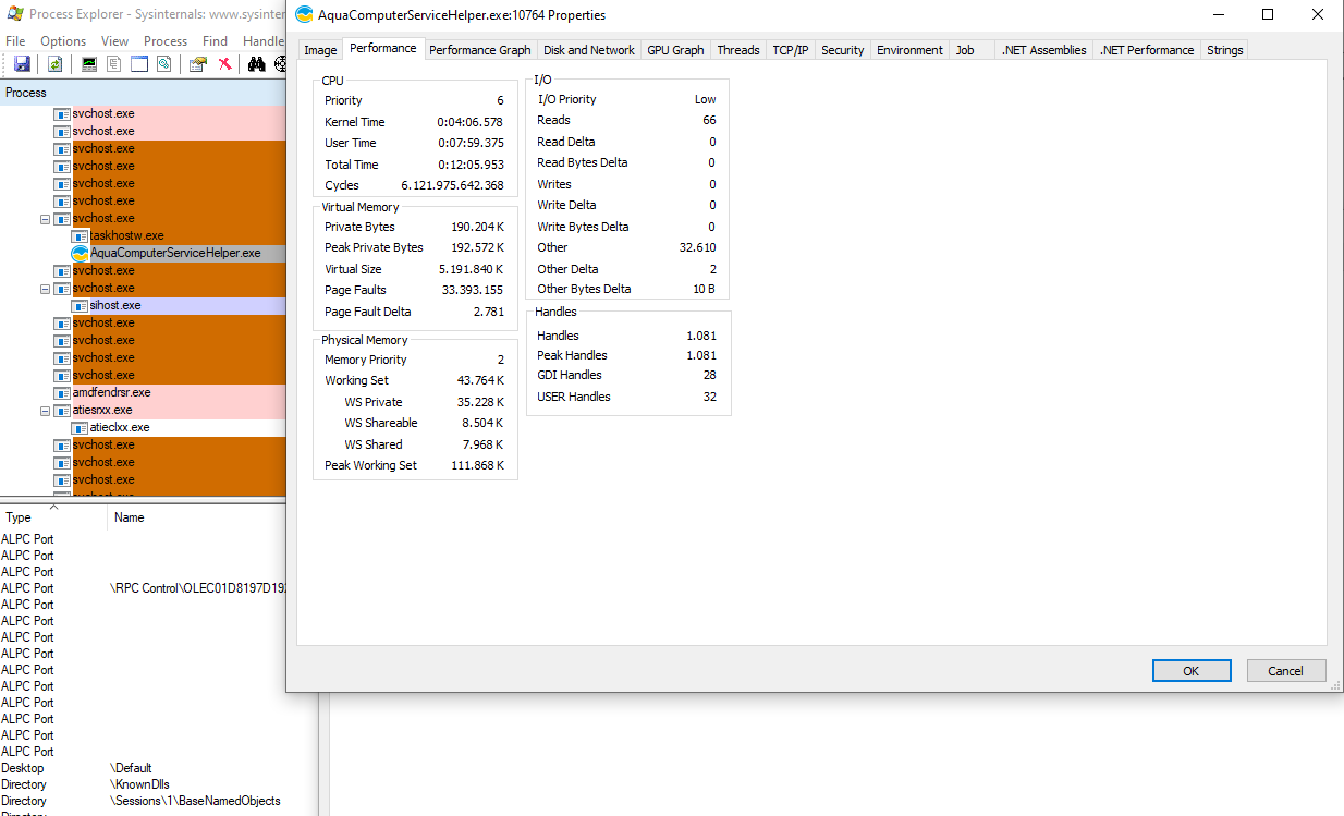 Sorry but I can't find what you want. What you gave me to download is process monitor, no process explorer. I don't know how this soft work, so give me more step to acced informations that you want pls !
