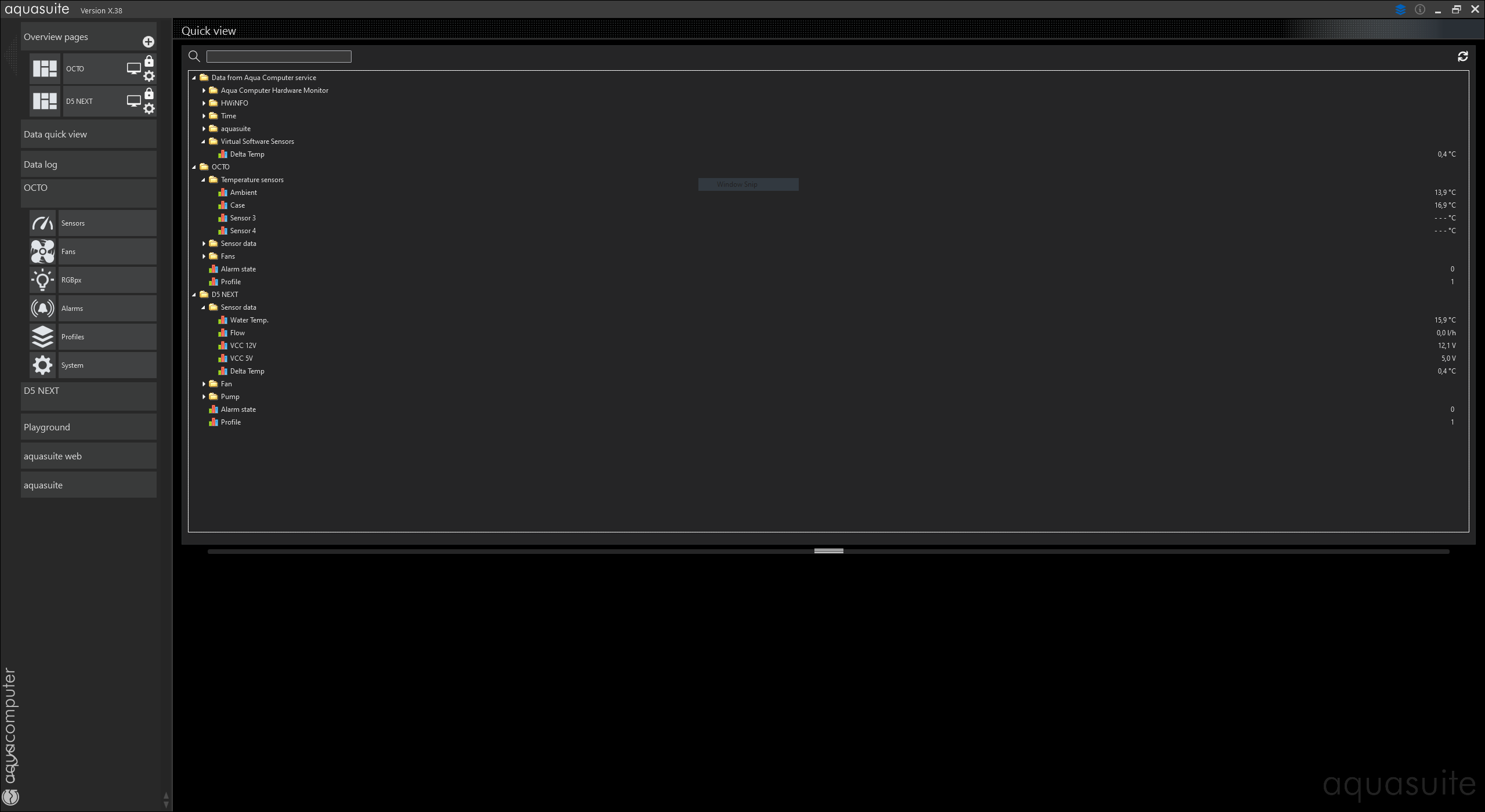 The latest Aquasuite version X doesn't seem to work with Hwinfo v7.0x even when shared memory support is enabled. As far as I understand the way that Hwinfo sensors are being read is changed.