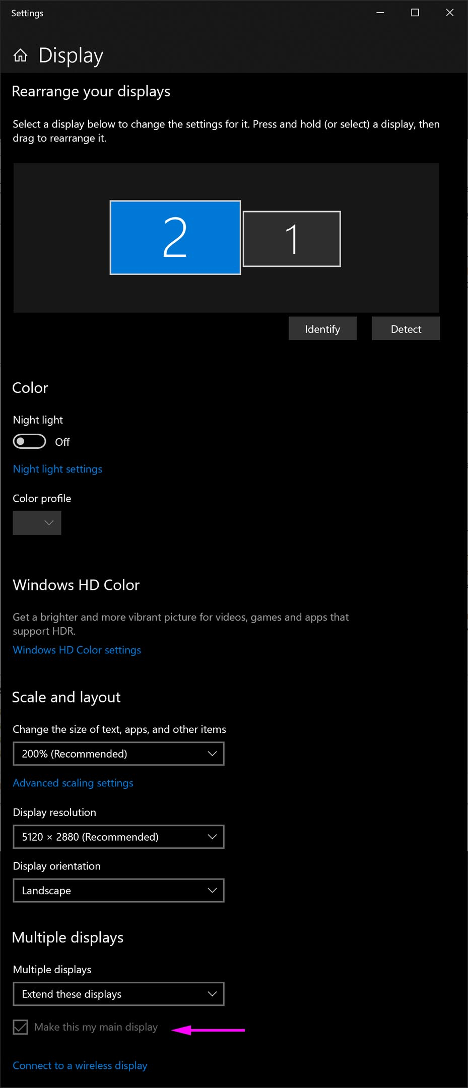 I use the 'Display setting' (screen_setup.jpg)