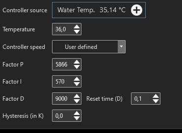When utilizing a step response curve to calculate the closest control variables for the fan speed to water temperature curve, I end up close to use a factor 1000 for the PID variables.