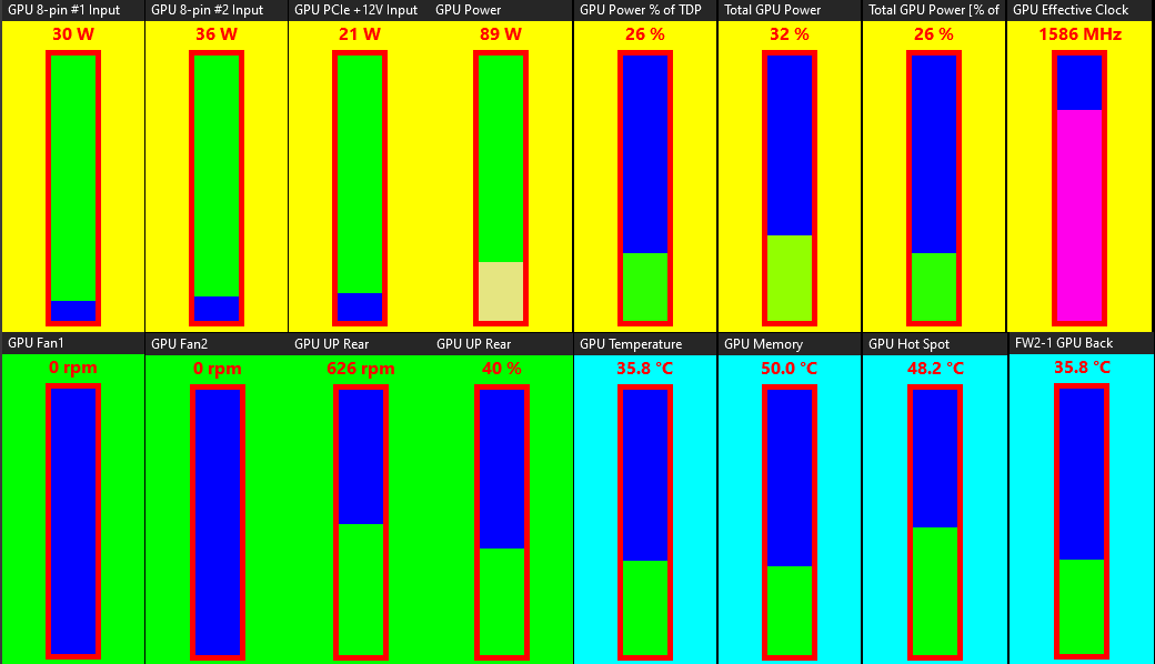 I bought a 7" diagonal internal display that is 1024x600. I made one Overview page for overall stats and one for my GPU (Asus TUF RTX 3080). I crammed a lot of items onto this display so I have to be fairly close to the case to be able to read it. Later on I bought another display that is 1920x480. This one is mounted in portrait orientation. I sized the items so it can be read from across the room. Since Aquasuite can only display one Overview Page at a time, I had to build the page with elements for both displays by inputting the proper coordinates for each element based on each display's location in the Windows raster. It worked, but then I decided to move the displays in the Windows raster. Doing this required that I type in new coordinates for every element on both displays.