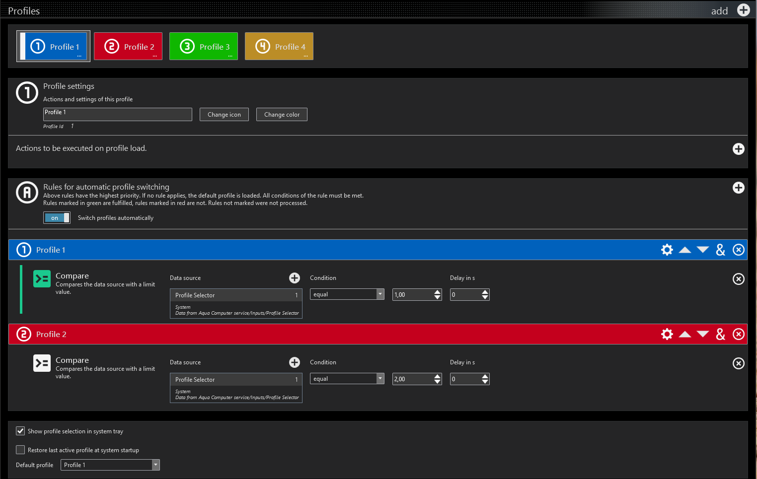 As you can see, there's a box I copied from a default page that shows the profile in use, currently 3 (green), but I'd like to make similar ones to set a specific profile.