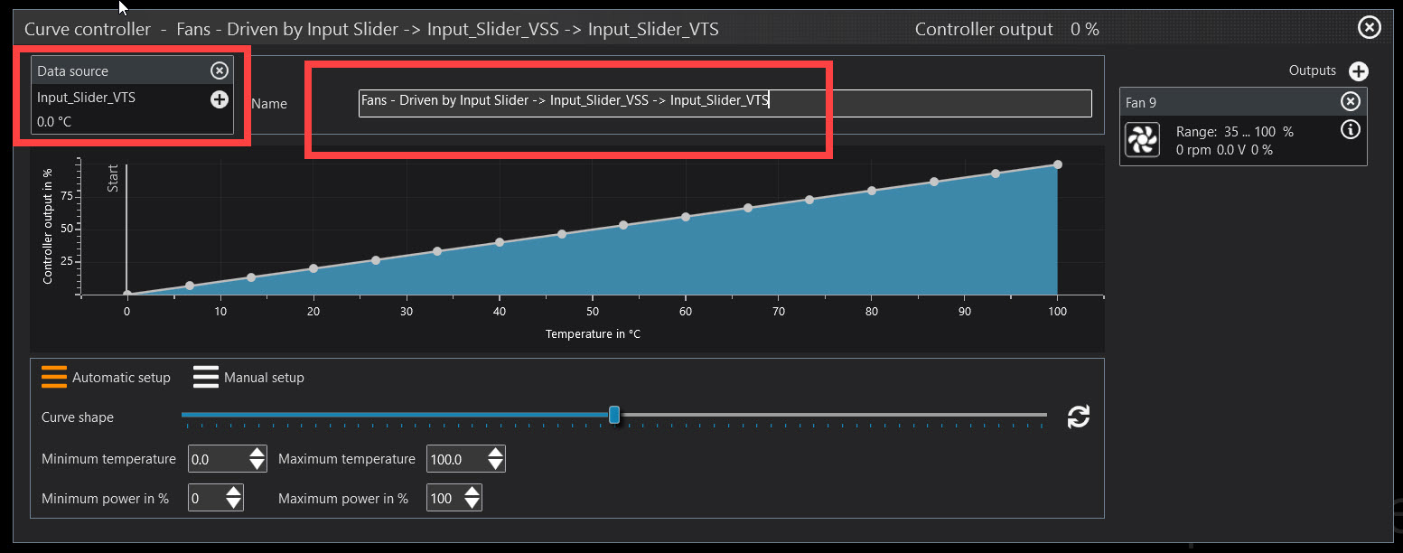 Neither the Aquaero 5 or the 6 i have in my computer have any option, on any of the pages, either in the aquaero settings, aquasuite settings or the playground settings to actually link any kind of input (slider, dial, etc) from the playground to any kind of actual fan channel, output, or controller anywhere that I can see.