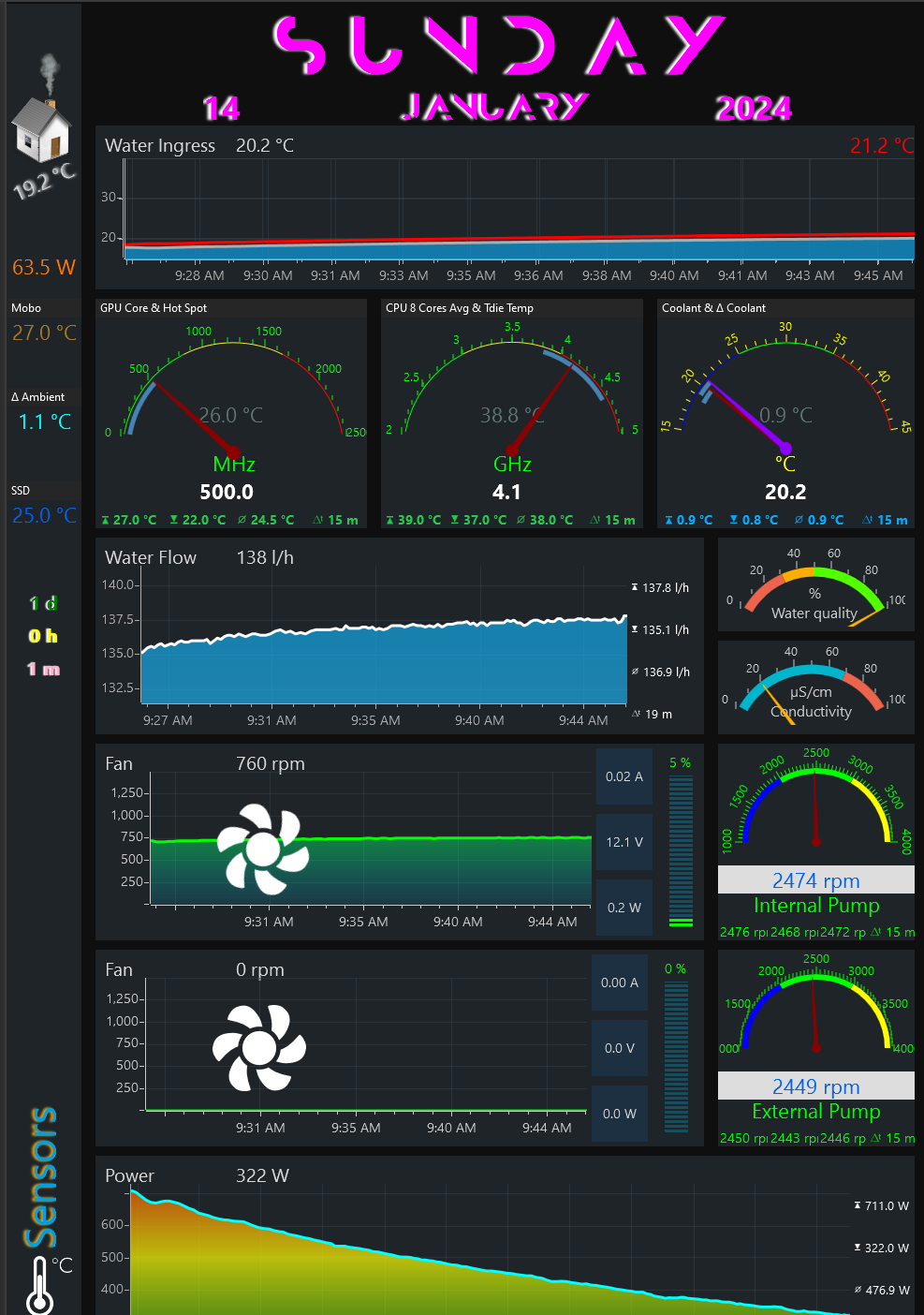 Updated dashboard on new system with pump impellers animation.