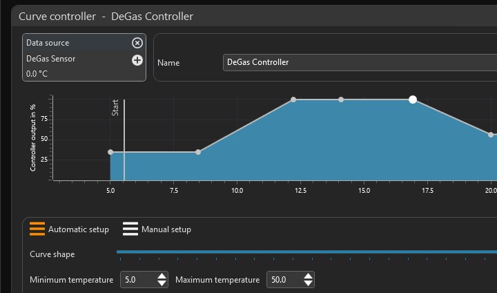 Of course, the curve could be replaced with a fixed 100 value. Then it wouldn’t be necessary to store the beginning of the deaeration and to calculate the seconds from deaeration start.