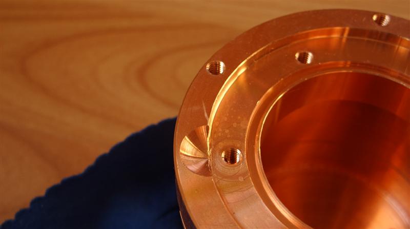 Die Fotos sind sicherlich auch nachbearbeitet worden, allerdings nicht wirklich intensiv. Staub und kleine Kratzer werden im Foto immer als störend empfunden und entsprechend entfernt, ich glaube nicht, dass irgend ein Hersteller dies nicht tut. Zum fotografieren wurde einer der ersten aquatubes Kupfer verwendet, eventuell waren hier auch noch keine Späne am Bohrer. Wer nun glaubt, wir würden nicht mit Spanbruch-Zyklen usw. arbeiten, der irrt. Dies wurde natürlich getan.